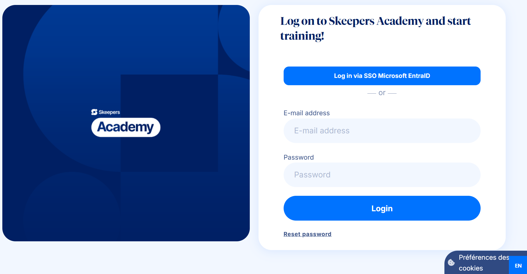 Go to the Skeepers Academy and log in. If you encounter a connection issue, click on Reset password :