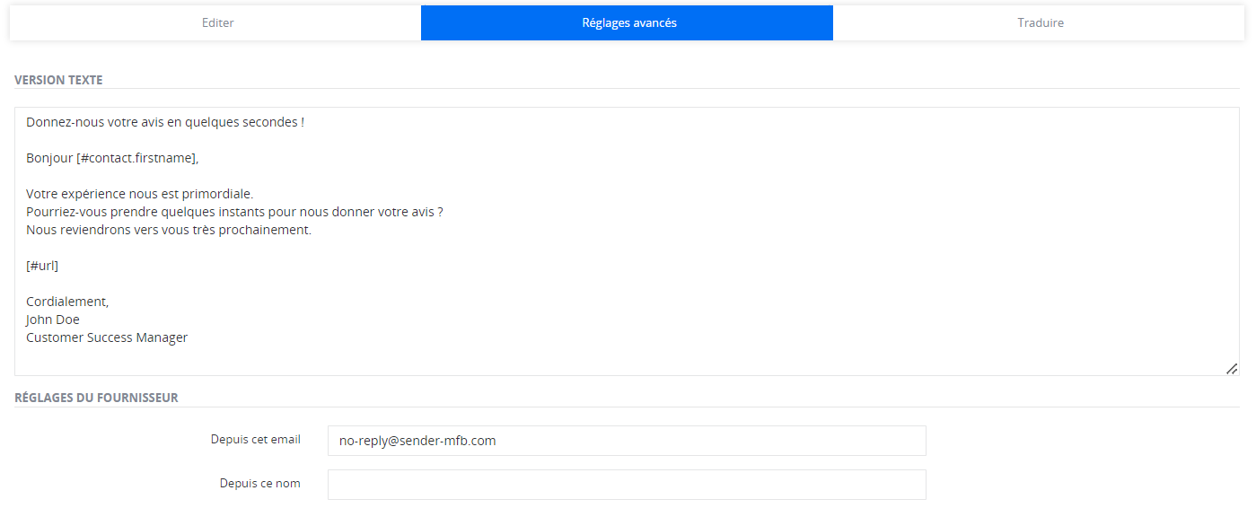 Now, in the 'Advanced Settings' tab, you can first complete the plain text version of the email template. Completing it ensures optimal readability and accessibility for everyone.