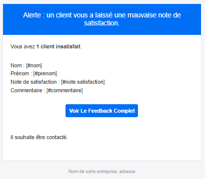 Alerte détracteur Alerte promoteur Alerte client à recontacter
