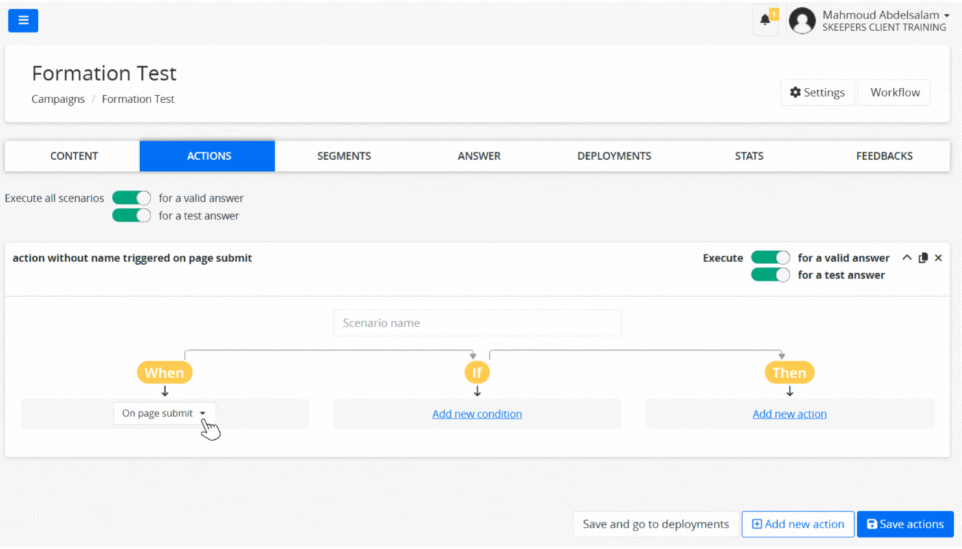 - On page validation: the scenario is triggered once the page is validated and the results are recorded.
