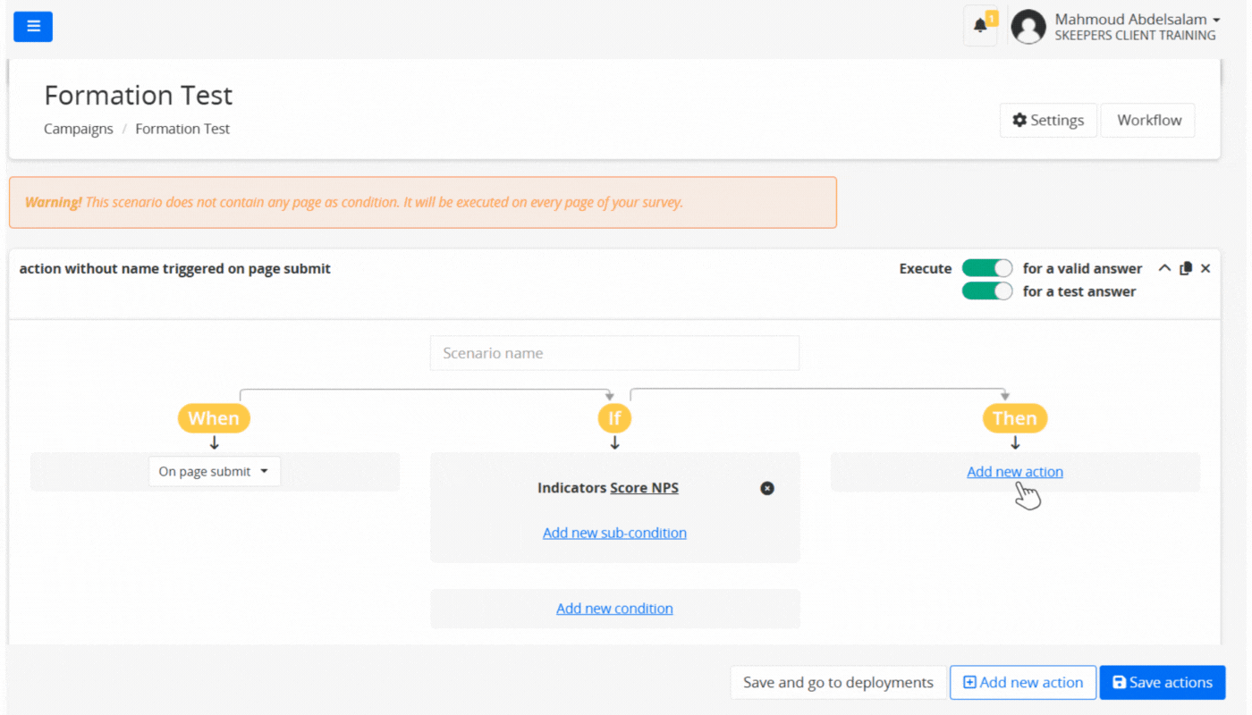 - Run a deployment: automatically triggers another deployment to respondents (based on the indicator criteria).