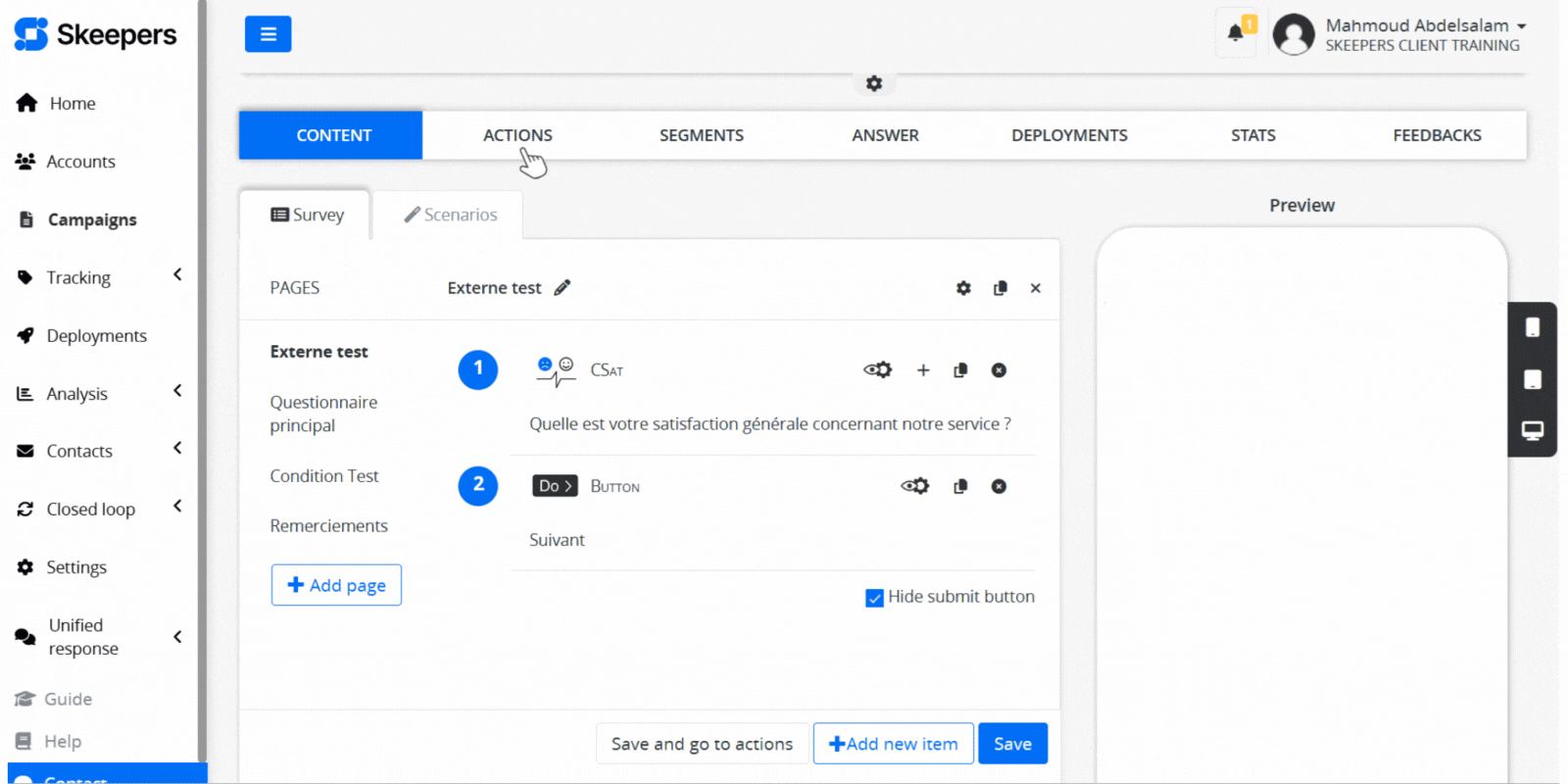 - Improve product knowledge: if you receive a low satisfaction score on a page or a product, a campaign is automatically launched to understand the issue.