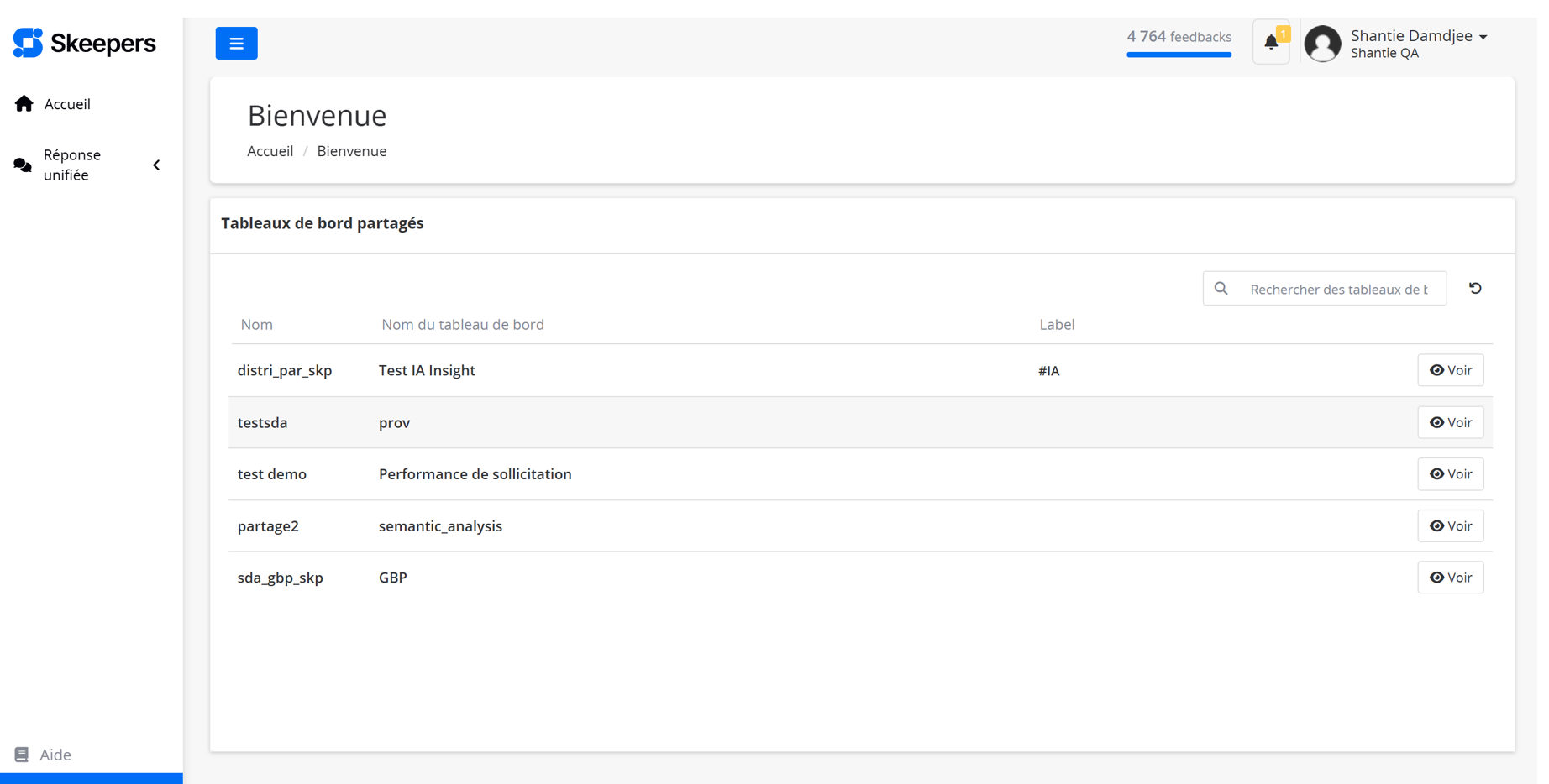 Peu importe la nature de votre tableau de bord et des analyses que vous opérez dans celui-ci, Skeepers vous donne la possibilité d'en partager son contenu en toute simplicité à une cible large ou plus restreinte. Au préalable, il faut bien évidemment avoir créé un tableau de bord.