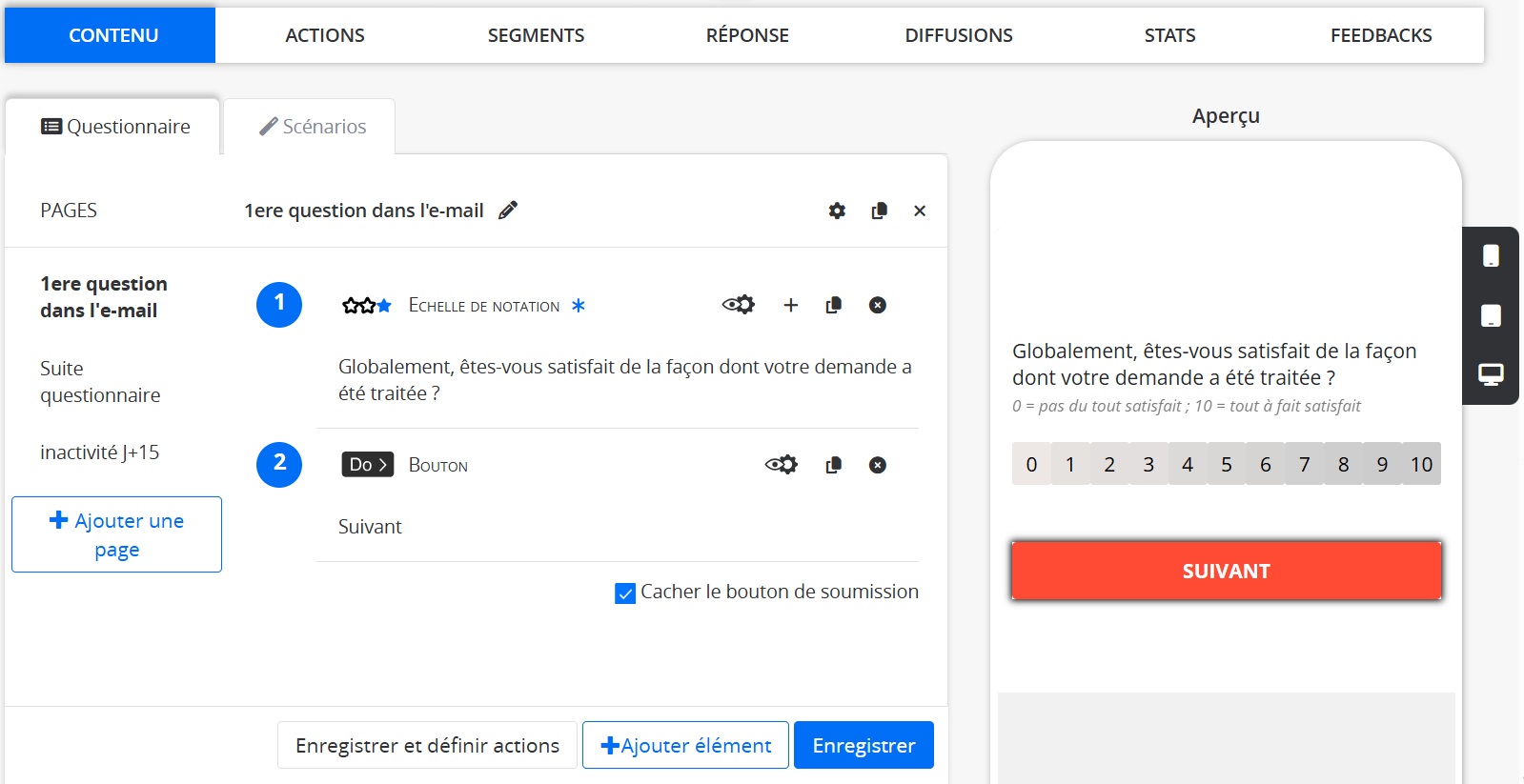 Créez une page dédiée à l'inactivité du questionnaire (En savoir plus sur la création d'une page dans votre campagne).