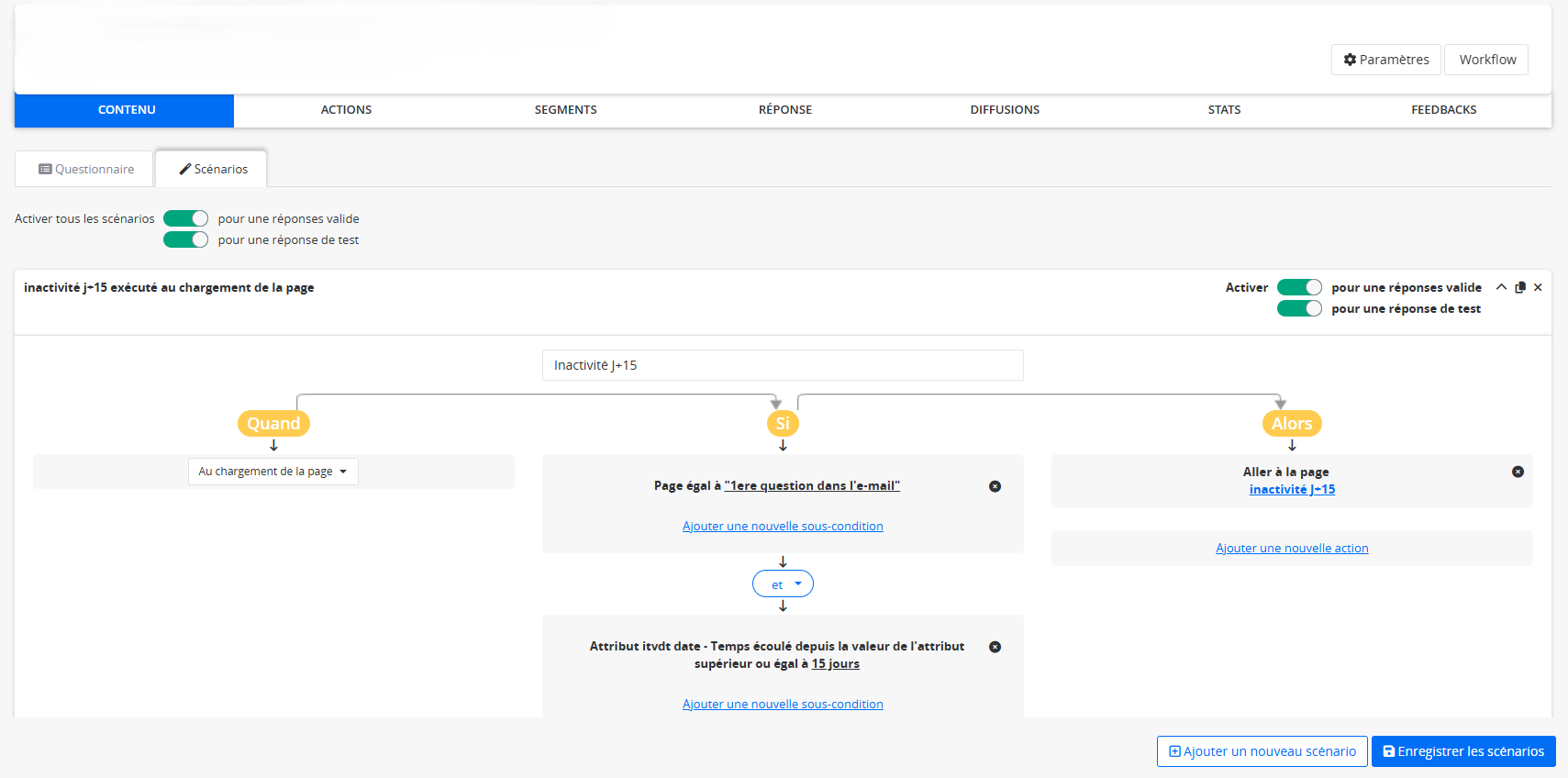 Choisissez la condition "Page", et sélectionnez la page de la question concernée. Puis cliquez sur