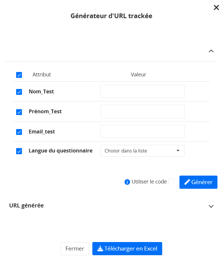 Si vous avez mis en place des Attributs, générez une nouvelle URL les incluant pour faciliter le tracking de votre campagne en cliquant sur le (en savoir plus à propos des attributs attachés à une diffusion URL)