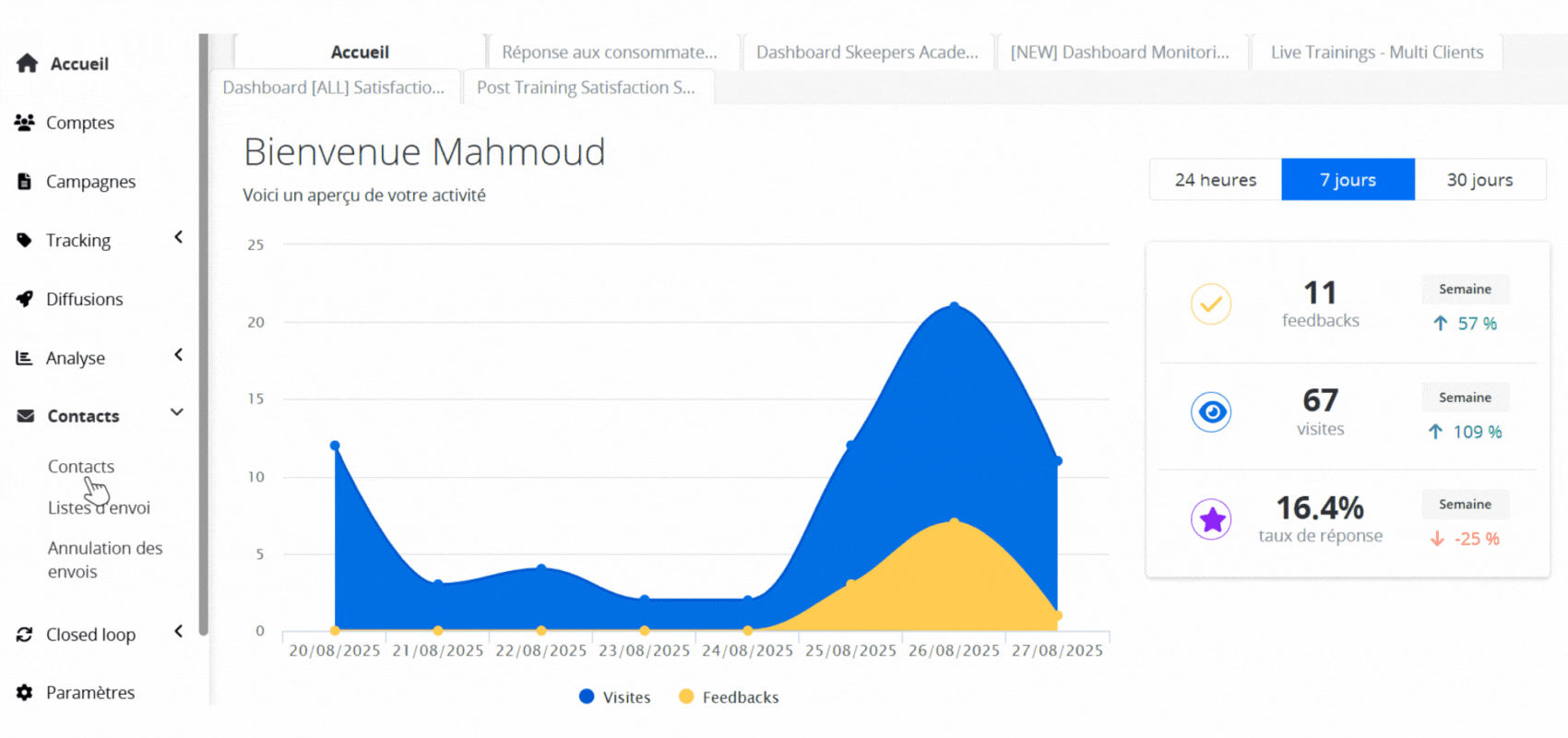 Si vous optez pour l'envoi de questionnaires par Email ou SMS via Skeepers, vous avez la possibilité de gérer facilement vos listes d'envoi dans la plateforme. Les contacts peuvent être manuellement ou automatiquement importés dans Skeepers afin de les inclure dans des listes d'envois spécifiques selon vos besoins.