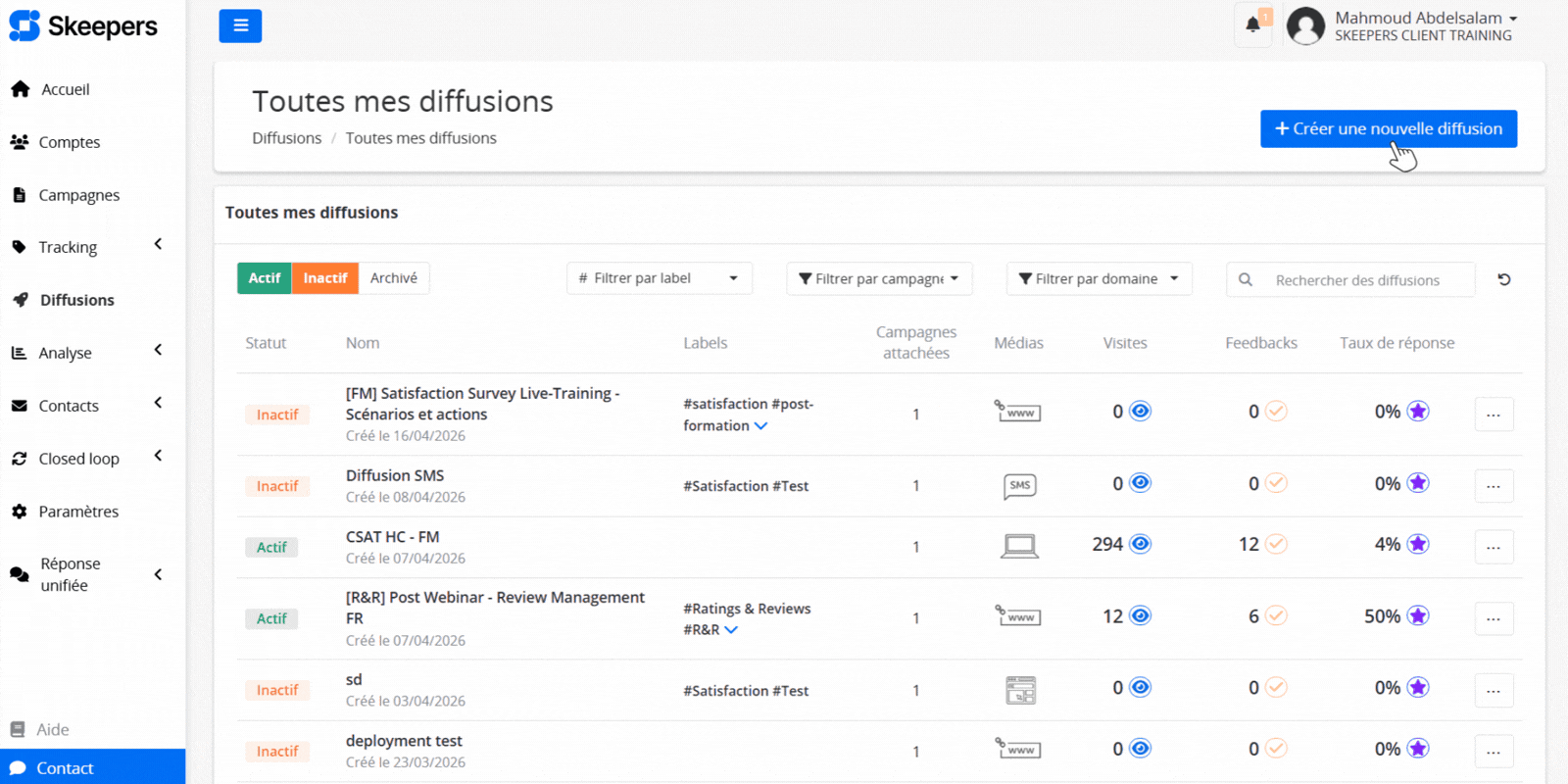 Rendez-vous dans le menu Diffusions, puis cliquez sur