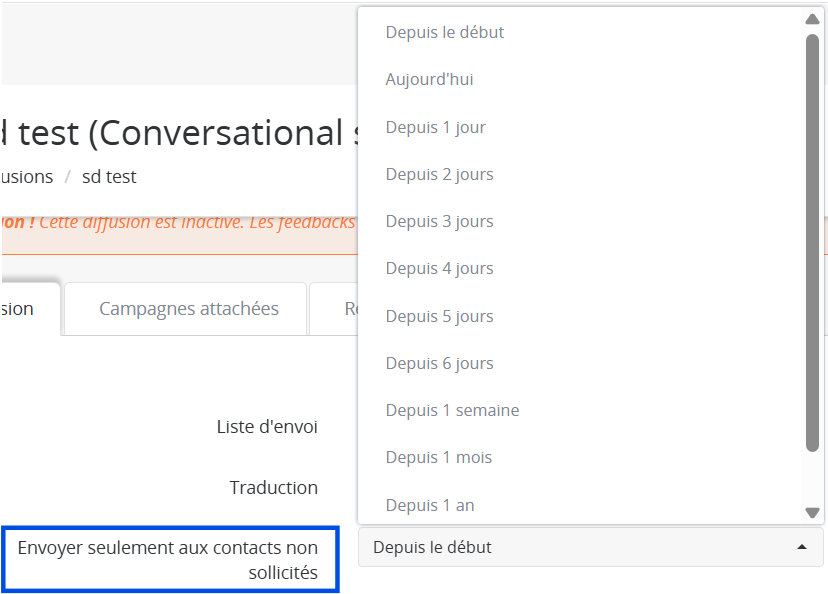 Vous pouvez choisir de ne pas diffuser votre campagne à vos contacts déjà sollicités depuis une certaine durée. C'est à dire que si vos contacts ont déjà reçu une demande de participation, ils ne recevront pas de nouvelle demande durant le laps de temps que vous définissez.